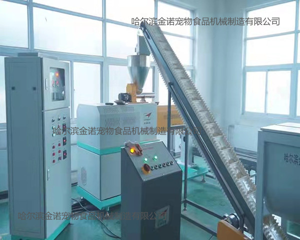 狗糧加工設備JNK200-T5M:1。JNK200-T5M型狗糧加工設備安裝方便、出廠已經(jīng)試機,狗糧機切刀采用直角切刀技術,調試簡單;2。狗糧設備的主軸和切刀小軸均可隨時注入耐高溫潤滑脂,延長狗糧機的軸承使用壽命;3。JNK200-T5M狗糧設備每小時生產狗糧顆粒200公斤。